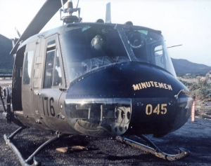 As I learned later, the helicopter, when the co-pilot picked it up, fishtailed out rather violently and threw one of the grunts out the left door. He grabbed the skid on the way out, and his compatriots pulled him back in. But then a mortar round went off beneath the tailbone, and a rather dramatic departure. But the helicopter was over gross weight by probably 600, 700 pounds, and it flew like that, too. About like a two-and-a-half-ton truck with a rotor system on it. And to sustain flight, it couldn't because it was too heavy. And so I did a combination of a running landing, wherein you simply lower the collective pitch because the engine was not strong enough to maintain rotor RPM normal, and there's no point in continuing to pull because it's just going to settle further. And after a jackrabbit departure down the riverbed, allowing the helicopter to come back down on the nose of the skid to regain the rotor RPM so I could fly it again, treating that RPM for forward speed to get about 40 knots. And after about five or six of those jackrabbit attempts— bouncing down this little riverbed. Anyway, I wasn't sure whether I was going to get up and go or if 13 of us were going to be down there with Charlie. But fortunately, it departed like a good fellow and went back to base.