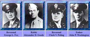 In November 1942, four young men “found each other” while attending Chaplain’s School at Harvard University. They had enough in common to bond them together. At age 42, George Fox was the “older brother”. The youngest was 30-year-old Clark Poling, and less than three years separated him from the other two, Alexander Goode and John Washington. A common cause brought them together, the desire to render service to their Nation during the critical years of World War II.